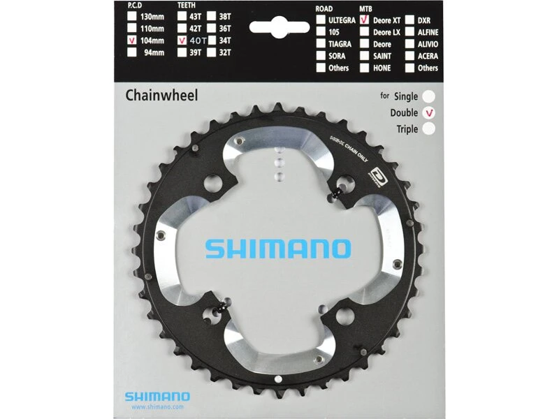 Shimano Kettenblatt mit 38 oder 40 Zähnen und 4 Arm Aufnahme.