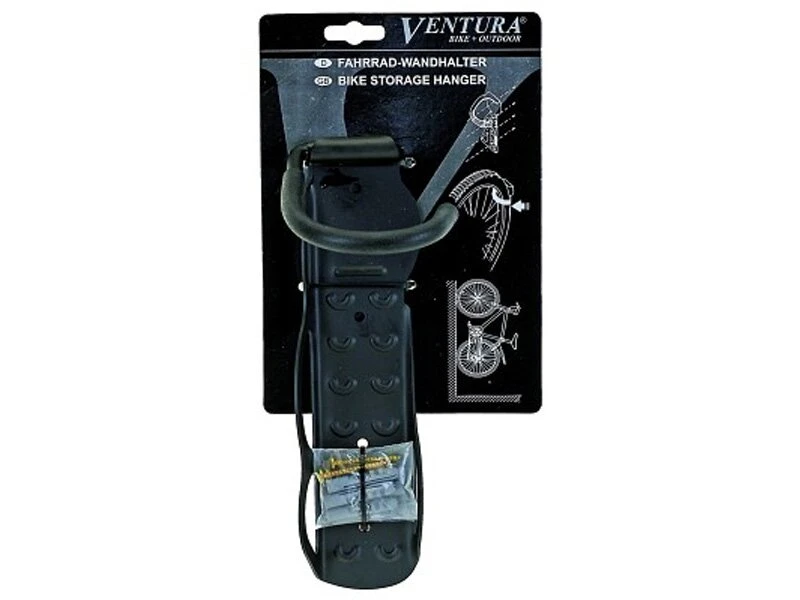 Wandhalter für Fahrräder von Ventura. Hier kann das Vorderrad eingehängt werden und das Fahrrad so platzsparendn – z.b. in der Garage – untergebracht werden.